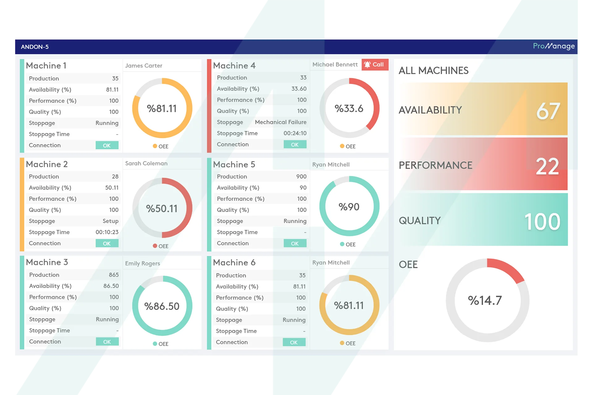 Provide real-time visibility dashboards to plant managers and operators, enabling instant access to production status, machine performance, and key operational metrics across all production lines.