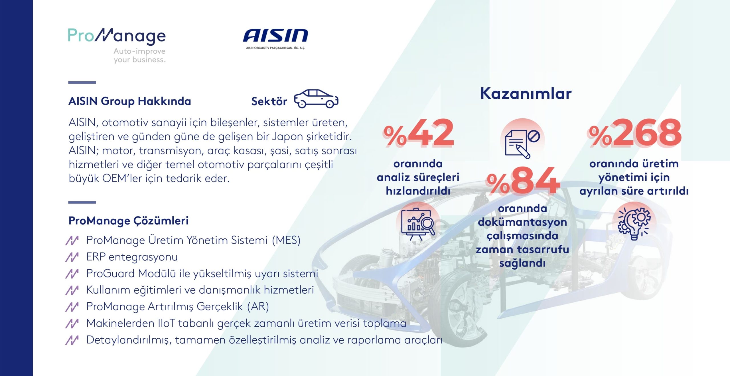 Japonya’da 1965 yılında kurulan Aisin Corporation, bugün 21 ülkede 200’den fazla üretim tesisinde 110 bin çalışanıyla otomotiv yan sanayinin önde gelen markaları arasında yer alıyor.