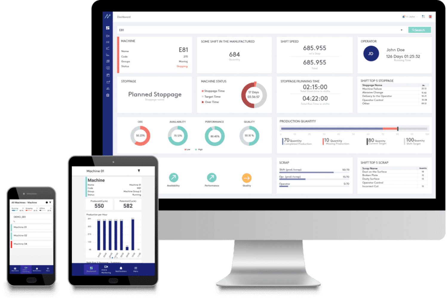 İlk olarak, ProManage'in izleme işlevini makinelerinize entegre edin. Üretim sahasında kullanıcıların veri girişi yapmasına gerek yoktur. Müşterileriniz, üretim performansı hakkında gerçek zamanlı bilgiler elde ederek, yalın ve akıllı üretim dönüşümüne doğru ilk adımı atmış olacaklar.